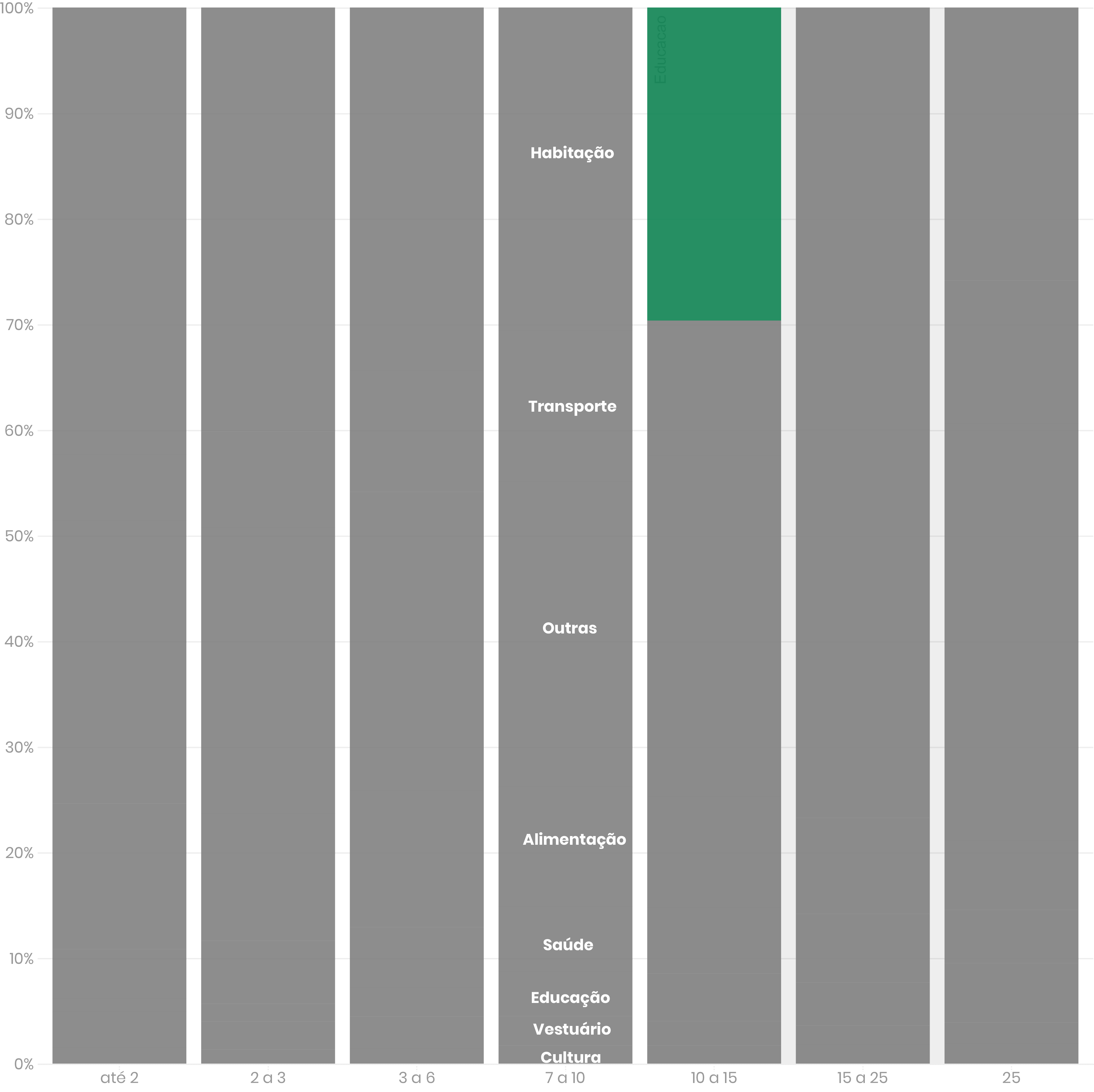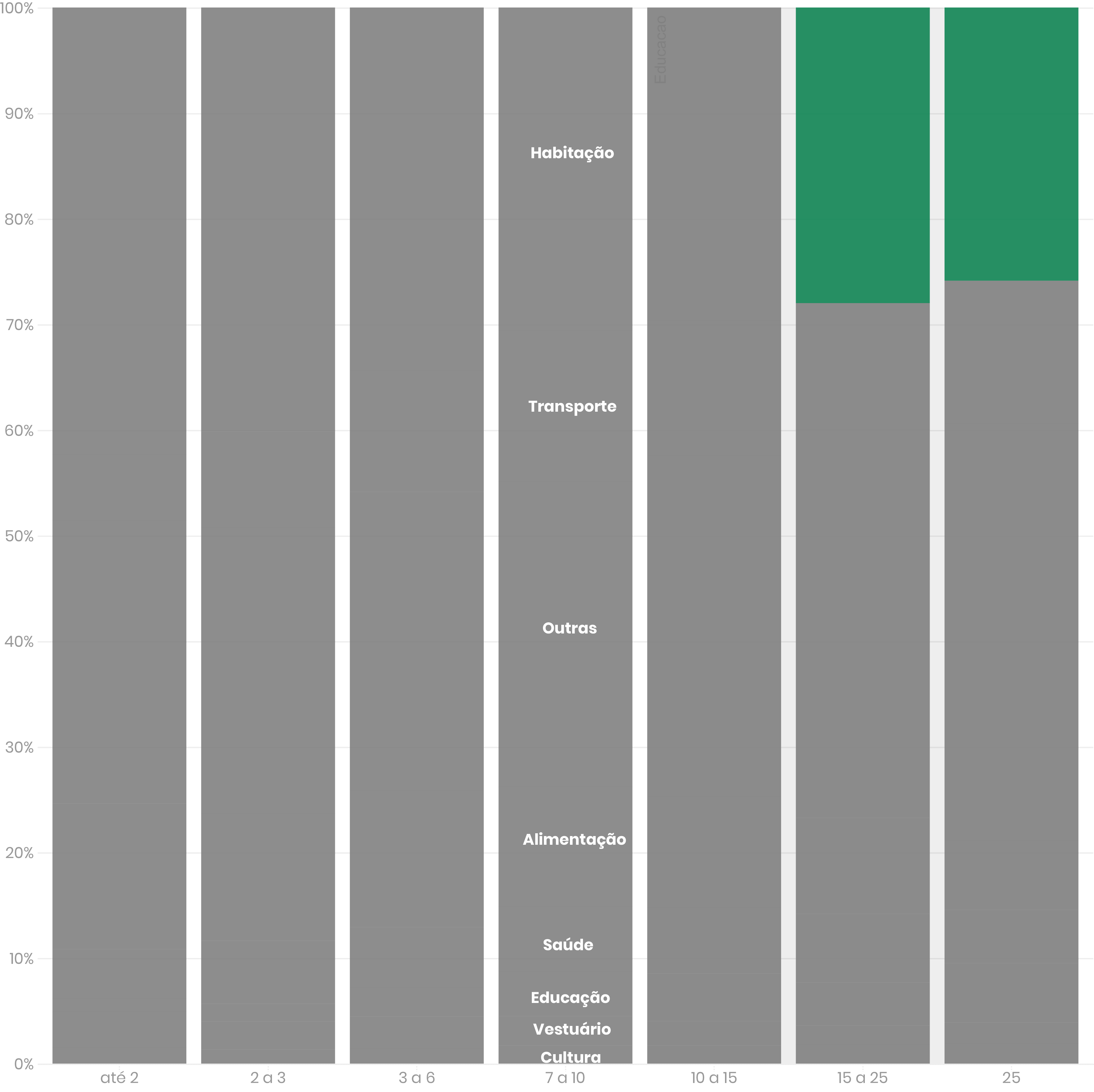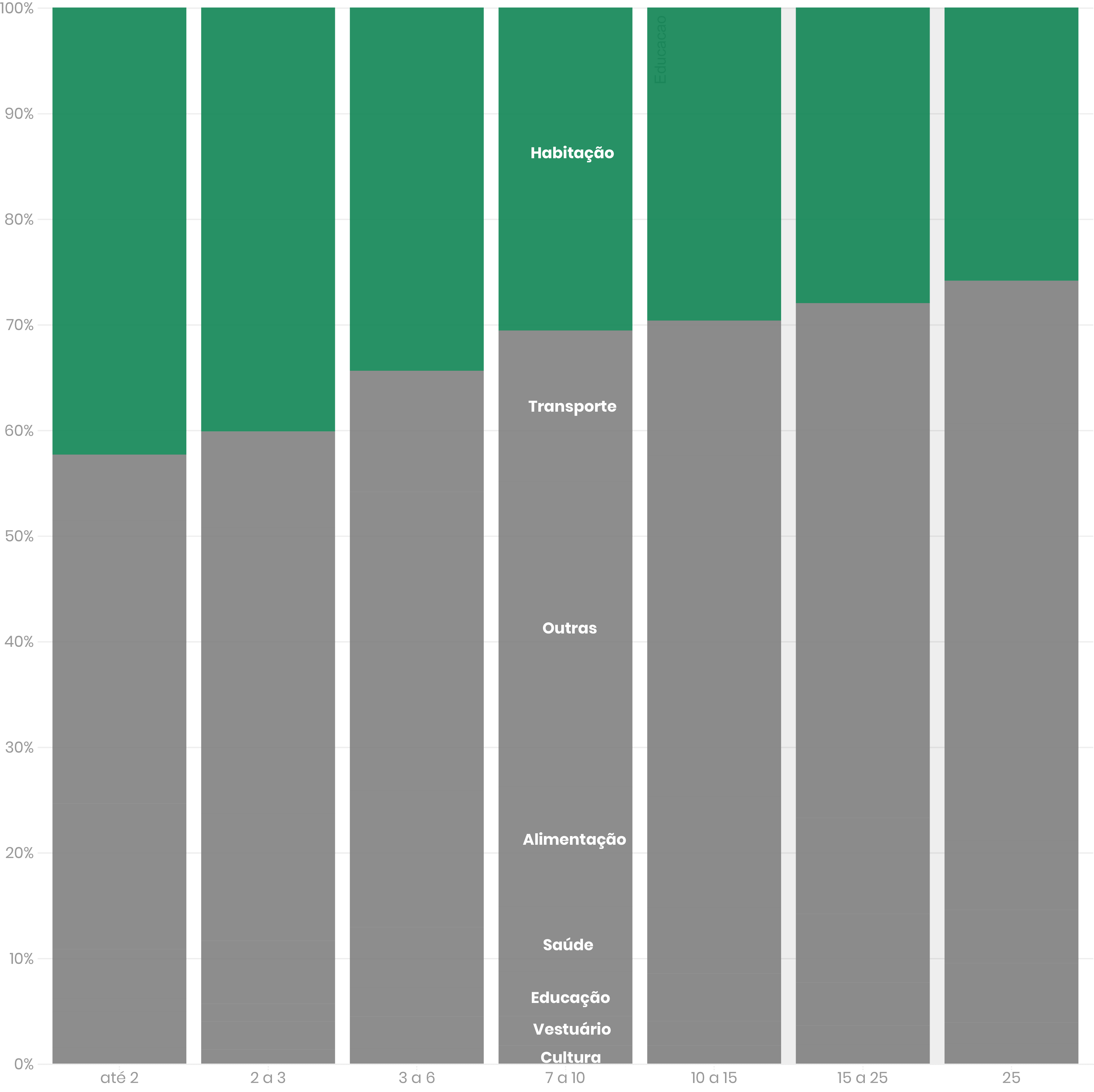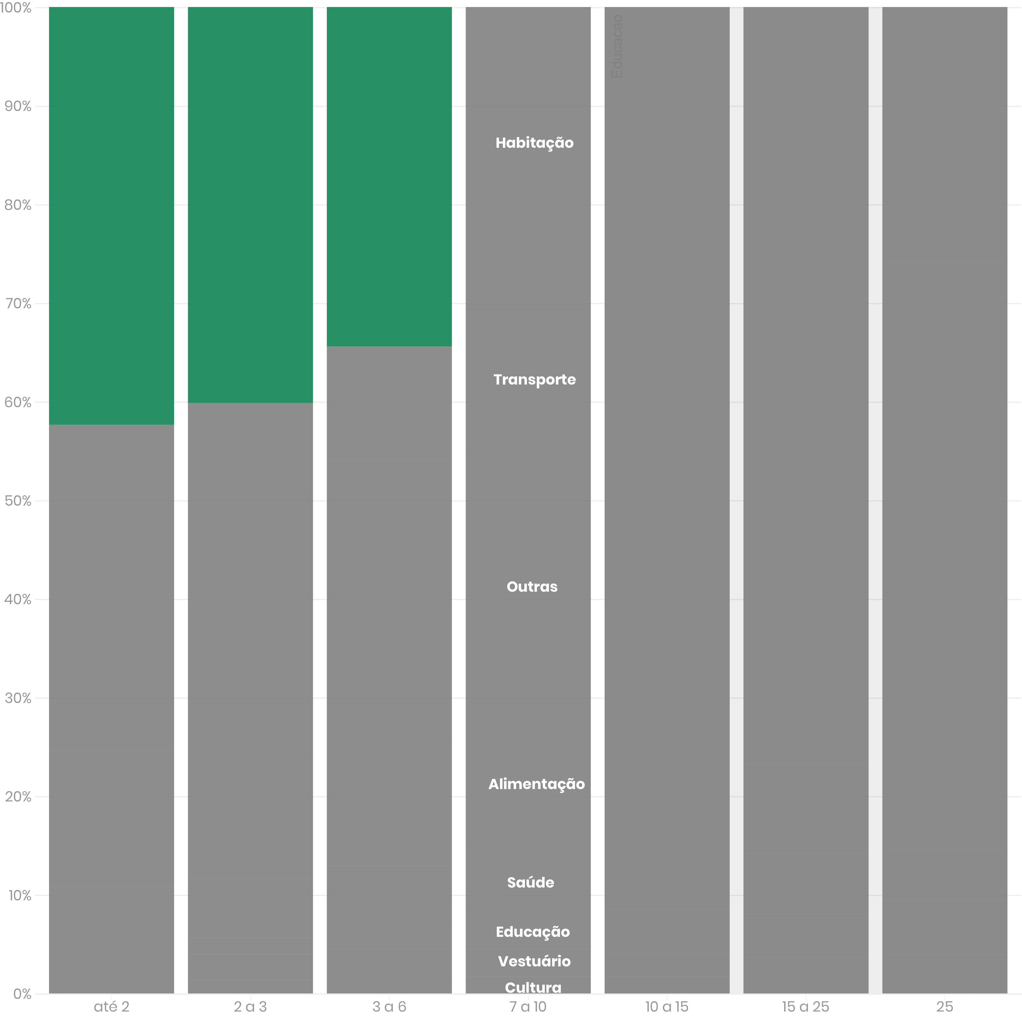 Famílias que ganham até R$ 2.862 – equivalente a três salários mínimos em 2018 – recebem destaque na pesquisa. Elas desembolsam pouco mais de 40% com essa categoria